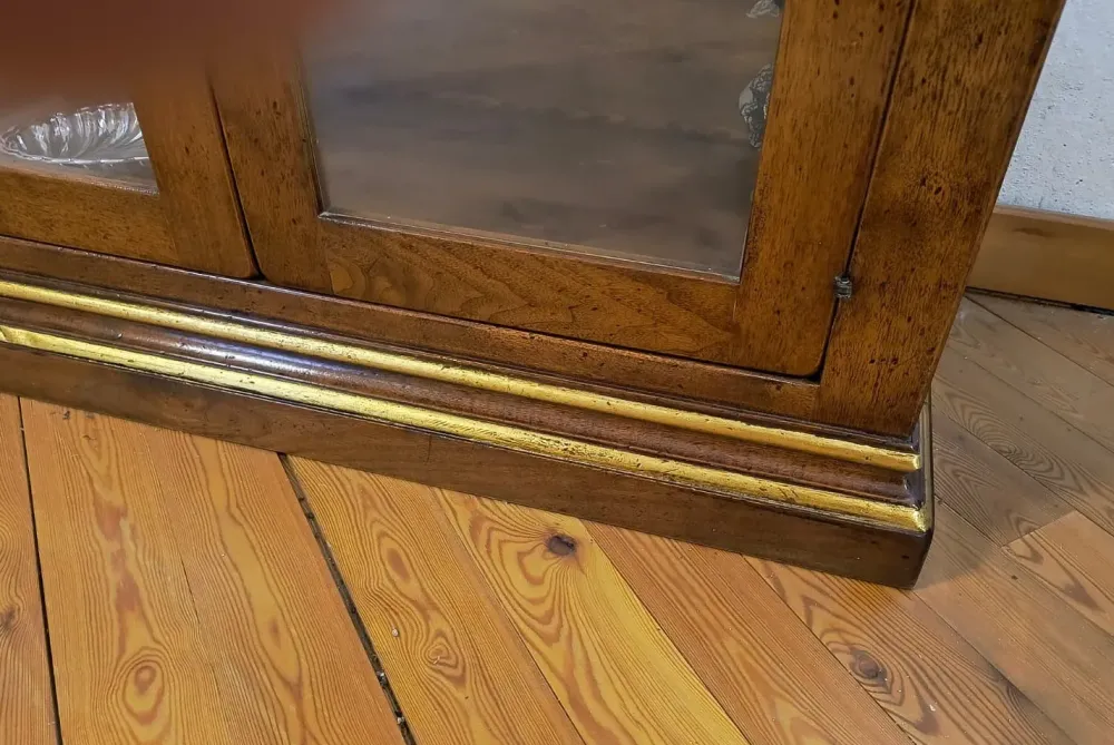Perfetta per esporre oggetti, stoviglie, libri o collezioni preziose, questa vetrinetta unisce funzionalità e pregio estetico, diventando un pezzo unico e distintivo nella tua casa.