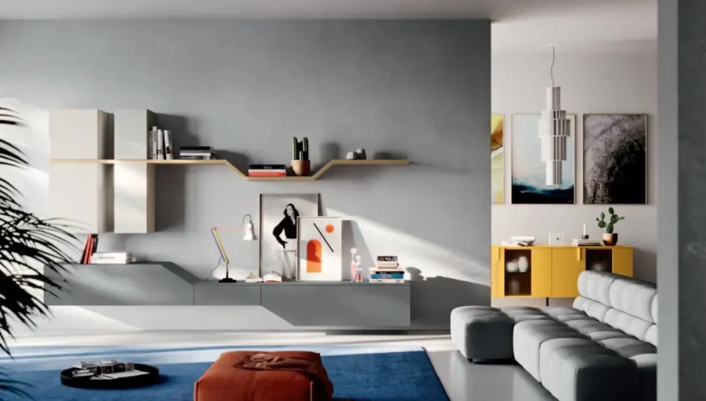 I mobili e complementi per il soggiorno offrono l’opportunità di customizzare lo spazio creando particolari atmosfere: se vuoi un soggiorno moderni, la Parete Attrezzata nell’immagine è l’ideale.