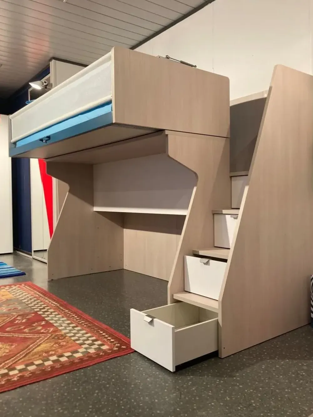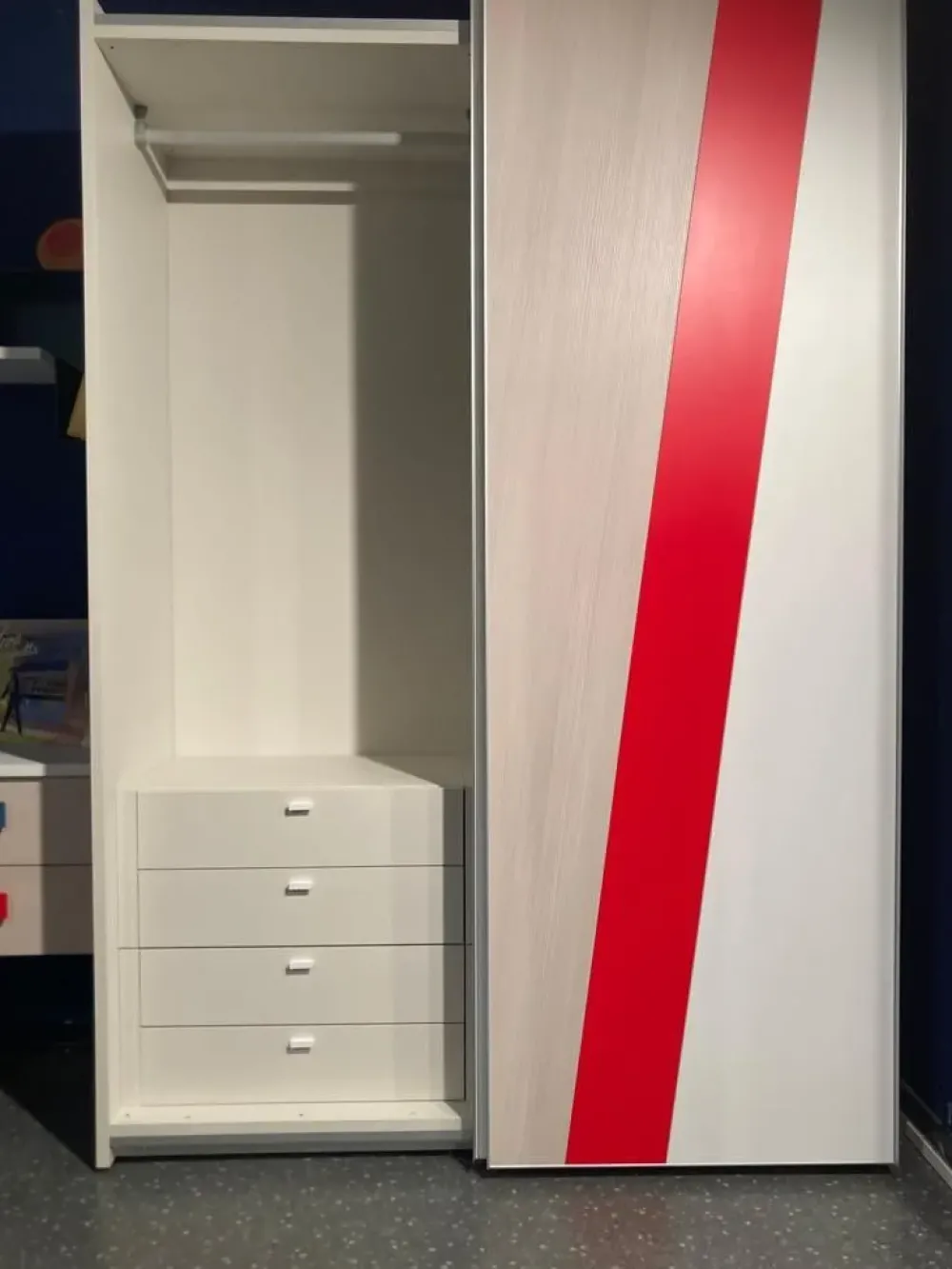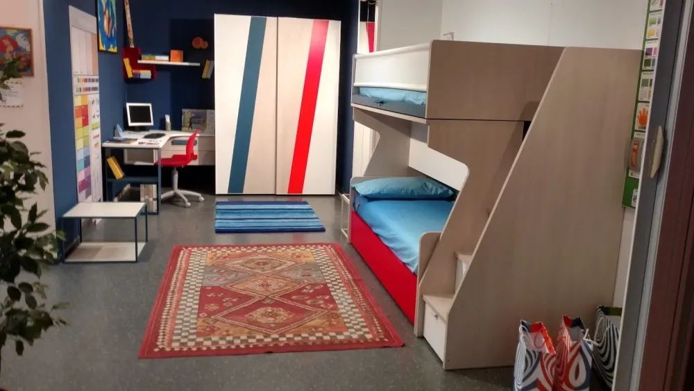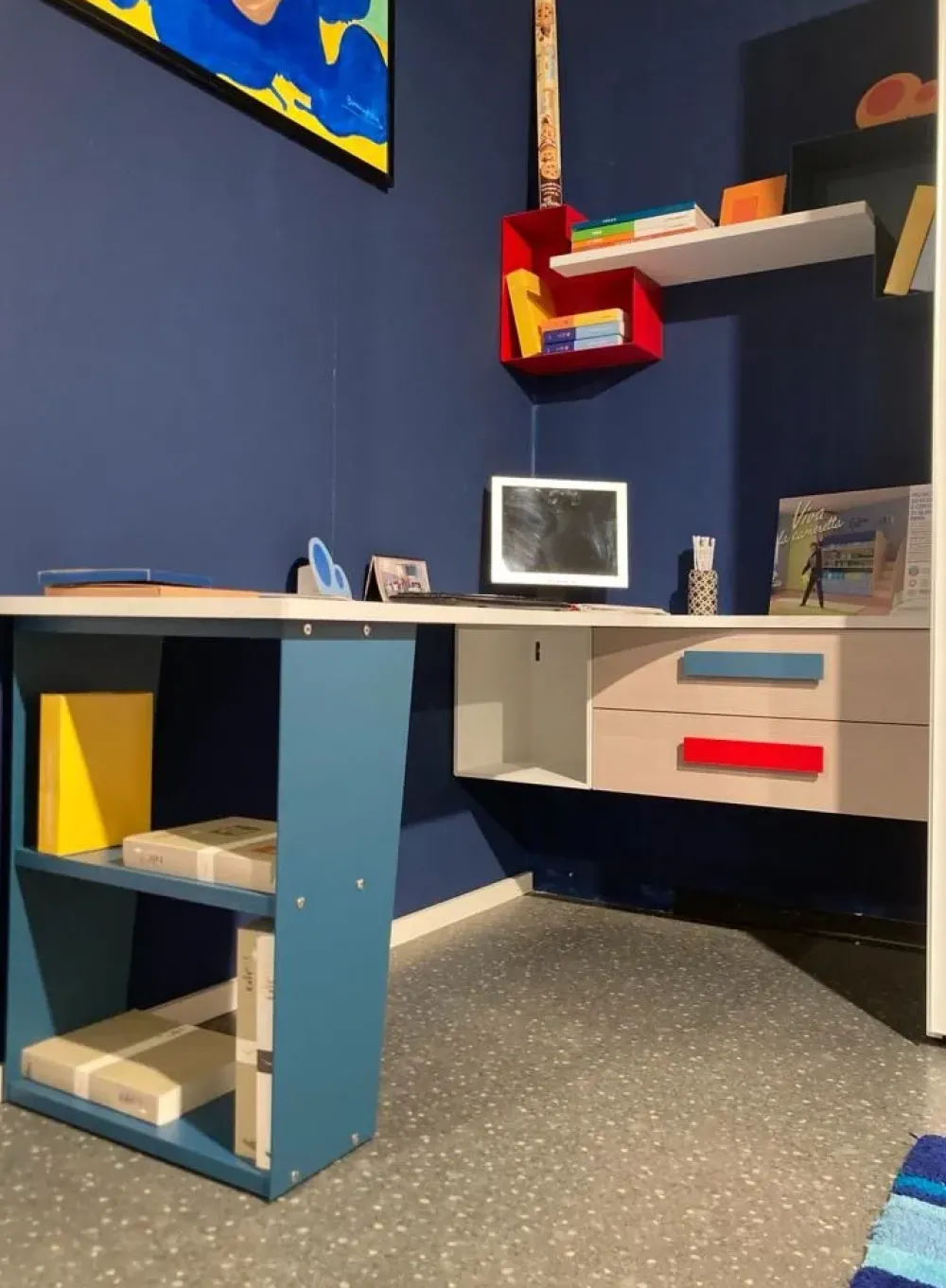 Per ammobiliare la cameretta unendo estetica e sicurezza, ti proponiamo qui il modello Young navy in offerta outlet. Questa soluzione è la soluzione per creare un ambiente confortevole e ben organizzato, dove è possibile fare i compiti, divertirsi e rilassarsi. I colori di design e i materiali sicuri che sono usati la rendono una cameretta capace di resistere negli anni e di accontentare i genitori e i vostri figli.