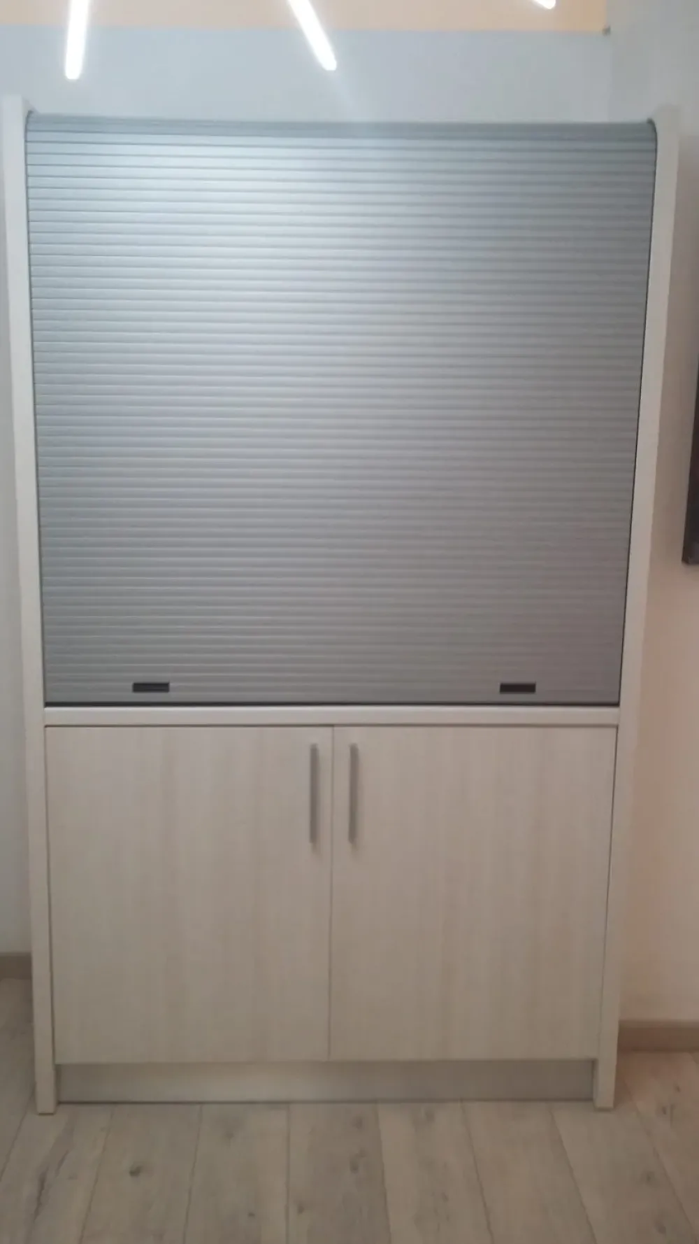 Serranda: In PVC, colorato grigio, completa di binario e fermo corsa.