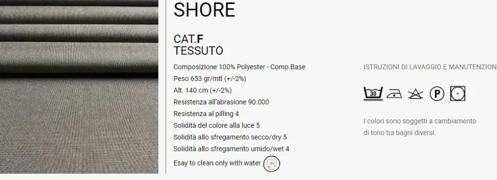 - Rivestimento: tessuto