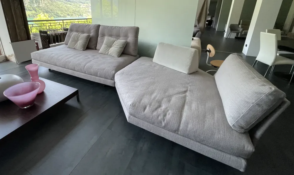 Allo scopo di ottimizzare lo spazio nel living, occorre scegliere gli arredi a seconda di conformazione e metratura dei locali, valutando quindi anche la tipologia di imbottito che fa al caso tuo tra divani, poltrone, divani letto e molto altro; il modello mostrato in foto è appartenente alla serie di con penisola di grande qualità firmati dal marchio.