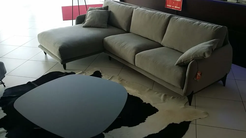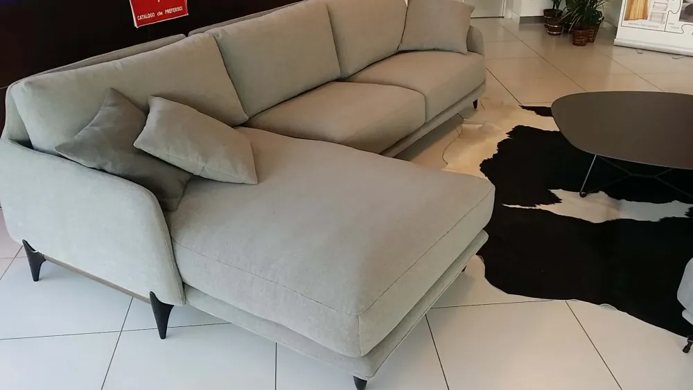 La particolarità del divano Elliot è anche il dettaglio del piedino realizzato in legno tinto eucalipto con particolari in metallo finitura cromo nero.