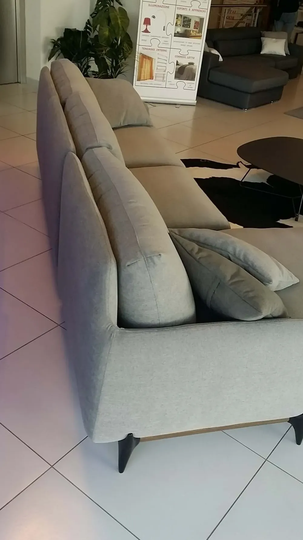 Il rivestimento è realizzato con un pregiato tessuto sfoderabile e lavabile di colore grigio