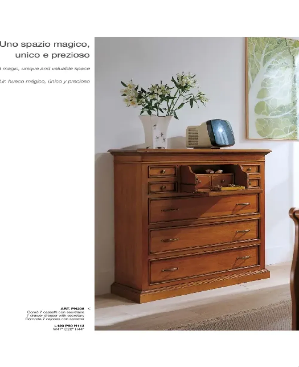 Comò in noce nazionale massello 7 cassetti con secretaire