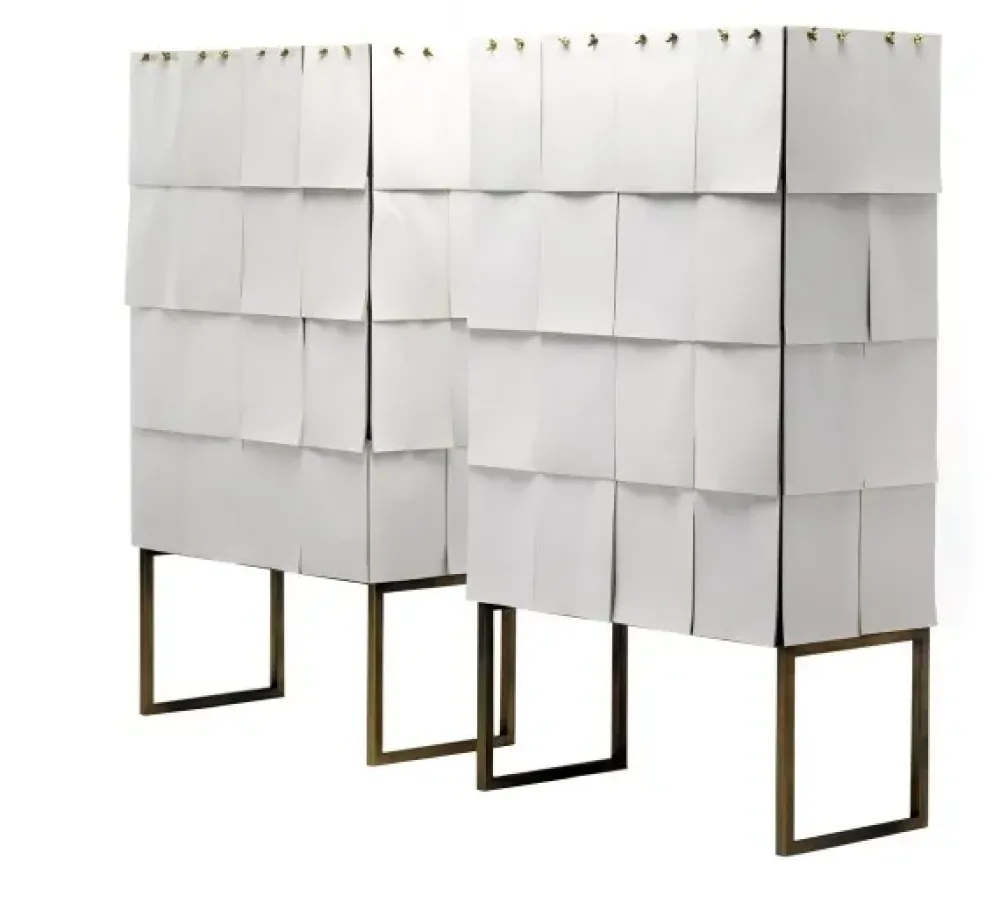 - Se stai tenendo conto di svariate composizioni con complementi accessori del brand per la tua abitazione, non dimenticare di valutare attentamente anche le finiture: la mensola Contenitore rivestito di fogli di carta notes mostrato in foto, per esempio, è interamente costruita in altro.
