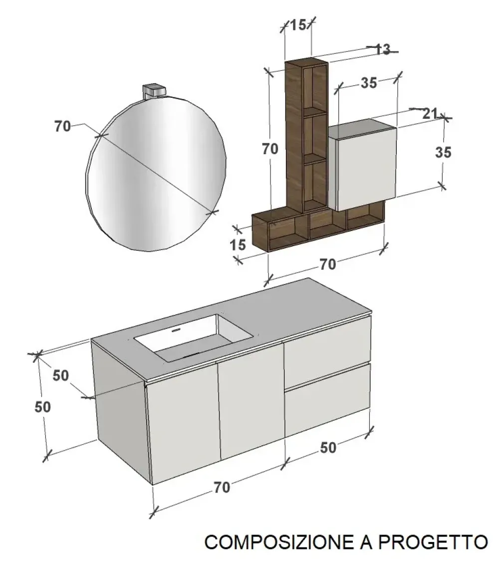 Dimensioni mobile: L120+L35 – P50