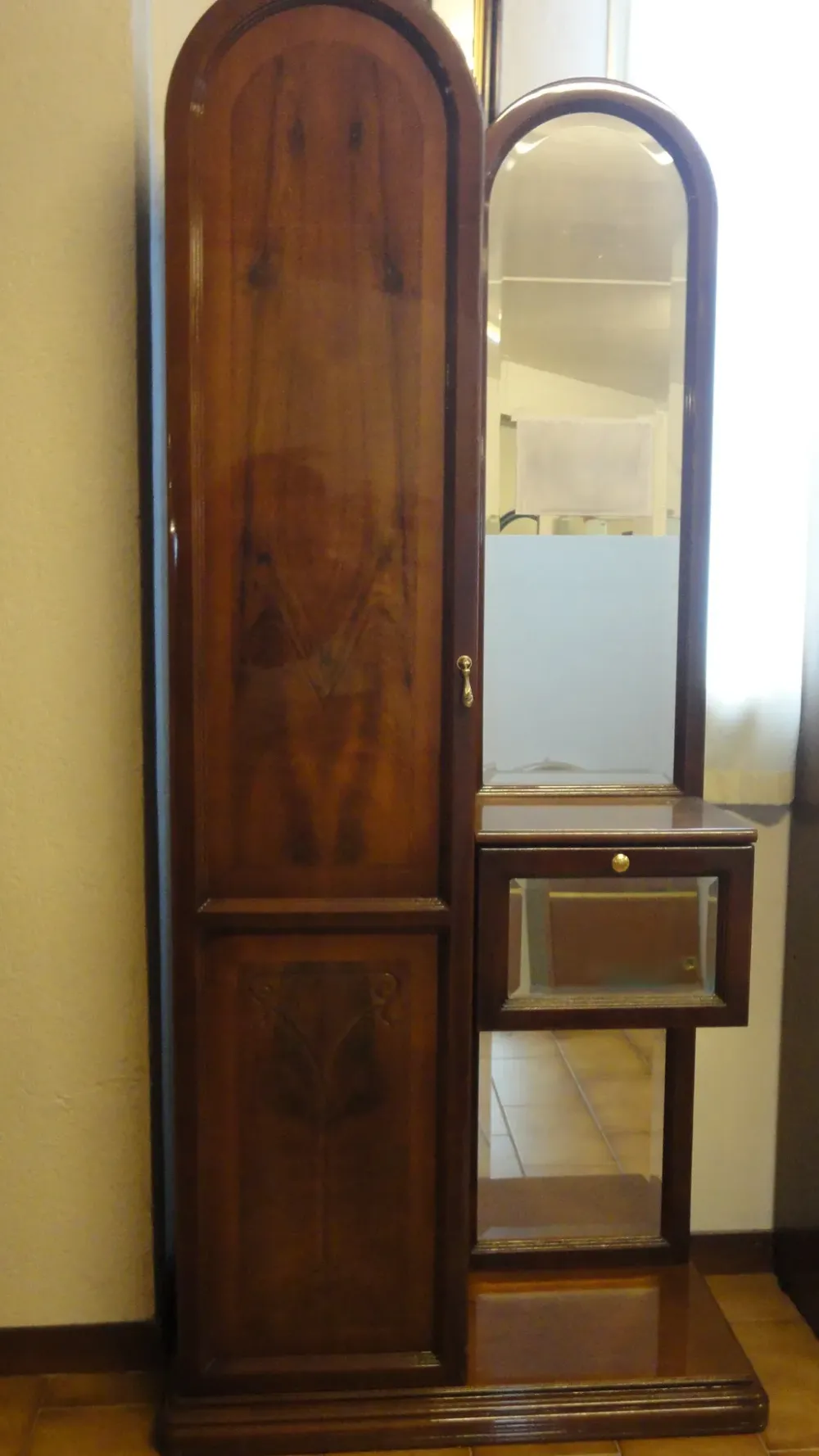 Il mobile ingresso in arte povera è completo di mobile armadio , specchio e cassetto sospeso .