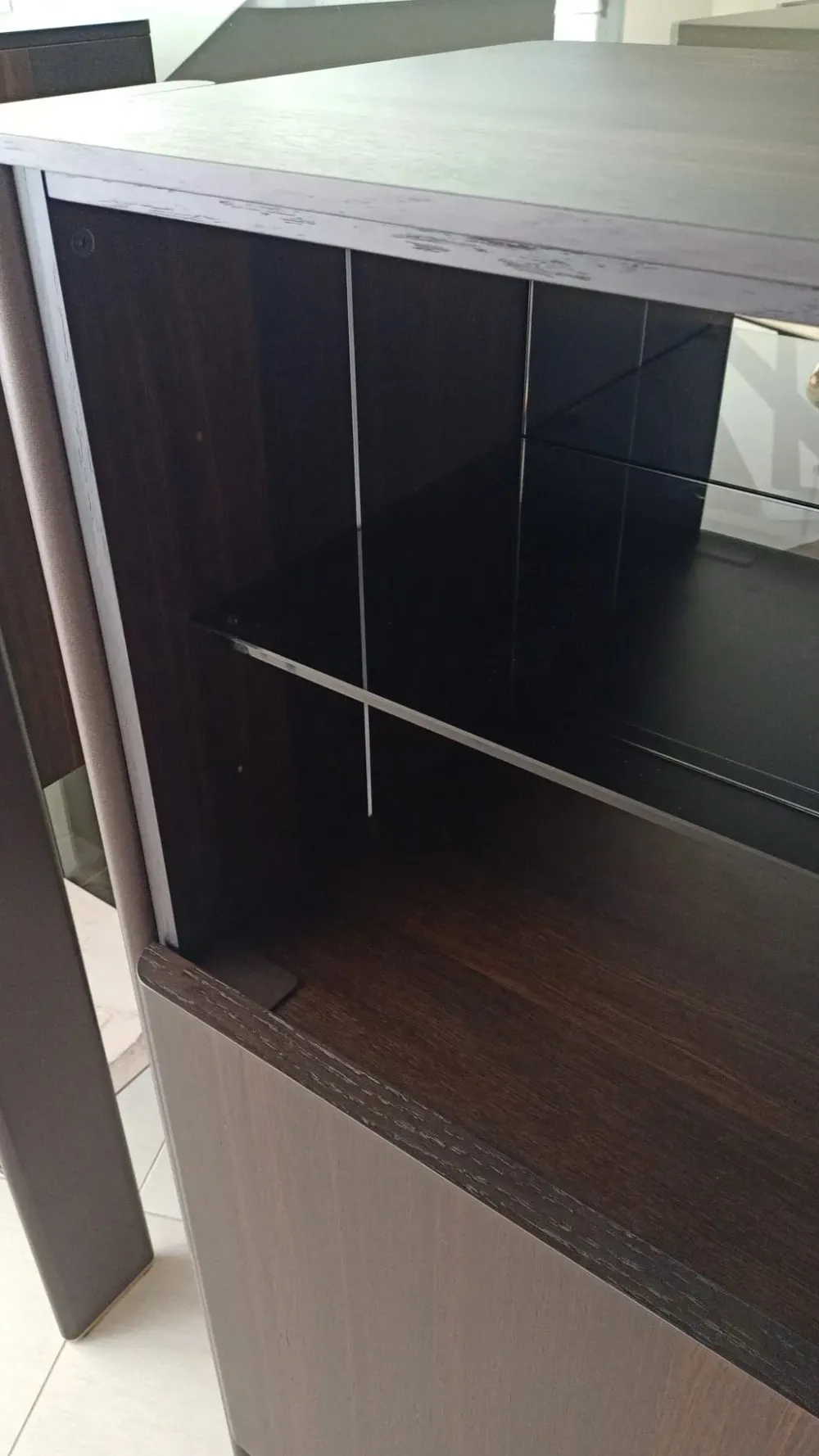 La principale caratteristica di questa madia in legno moderna è il meccanismo di apertura. L’anta scorre in verticale, permette di chiudere o aprire una porzione di mobile alla volta. Può anche essere lasciata abbassata, per invertire la parte a giorno e quella chiusa. Una funzione ideale se si vuole utilizzare Cremona come un raffinato mobile bar di design.