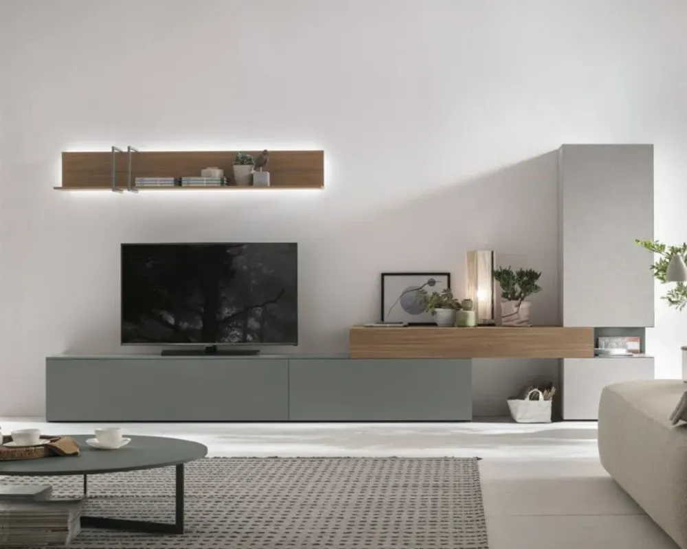 La parete attrezzata modello At114 nell’immagine saprà impreziosire il tuo living sottolineando le doti estetiche del locale: che tu voglia riporci libri, oggetti d’uso prettamente decorativo o la TV, questo mobile ti assicurerà tutta la qualità del brand Tomasella a prezzi imbattibili.