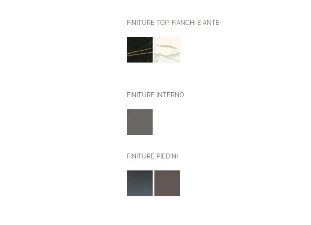 Ripiani interni in cristallo e piedini in metallo verniciato.