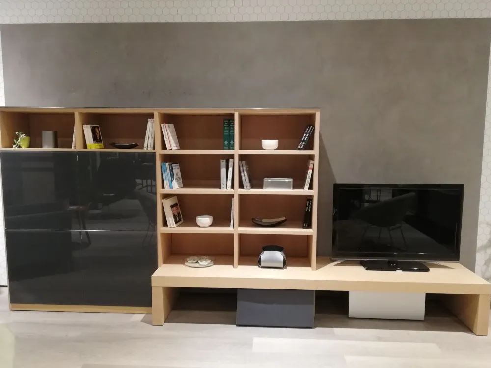 - Se vuoi impreziosire il soggiorno con un mobile a terra, scopri questa parete attrezzata in Offerta Outlet: saprà rendere lo spazio operativo e pratico senza essere di intralcio.