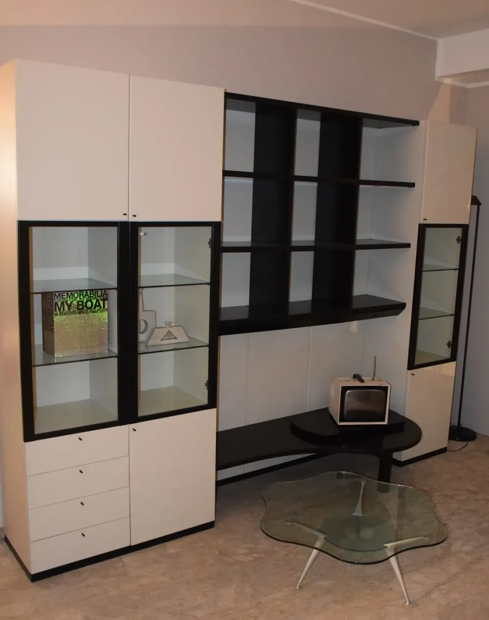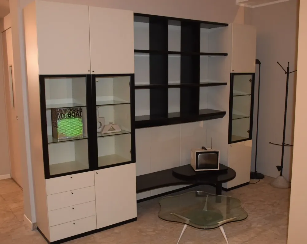 Composizione cm.300 h.230 in legno laccato opaco bianco//nero.