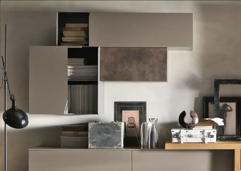 Se desideri ultimare il soggiorno con una parete attrezzata push–pull, il modello Parete attrezzata industrial mostrato in foto fa al caso tuo.