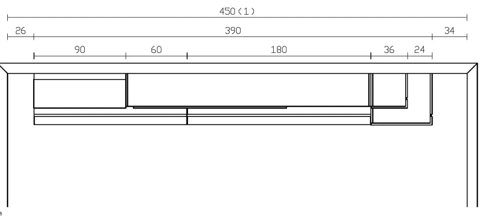 La parete attrezzata Qsm 633 ha una larghezza che va da 351 a 400 cm ed è perciò ideale per locali di svariate dimensioni e forme.