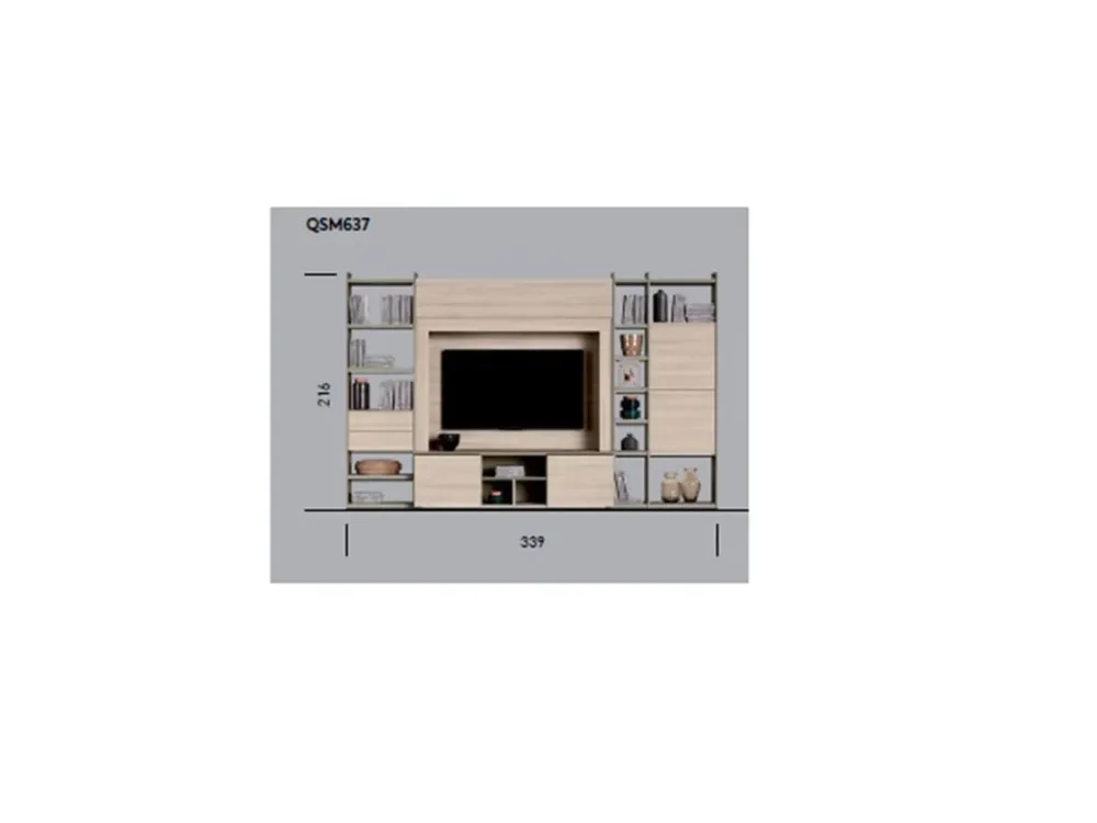 Se vuoi completare il living con una parete attrezzta con maniglia, il modello Qsm 637 mostrato in foto fa al caso tuo.