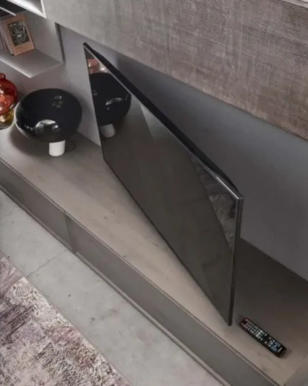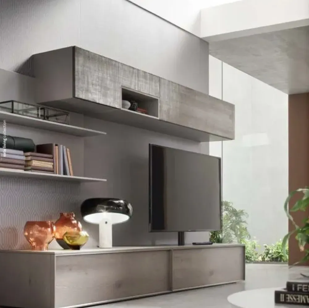 - Se vuoi impreziosire la zona giorno con un mobile sospeso, scopri questa parete attrezzata in offerta: saprà rendere lo spazio dinamico e operativo senza risultare d’intralcio.