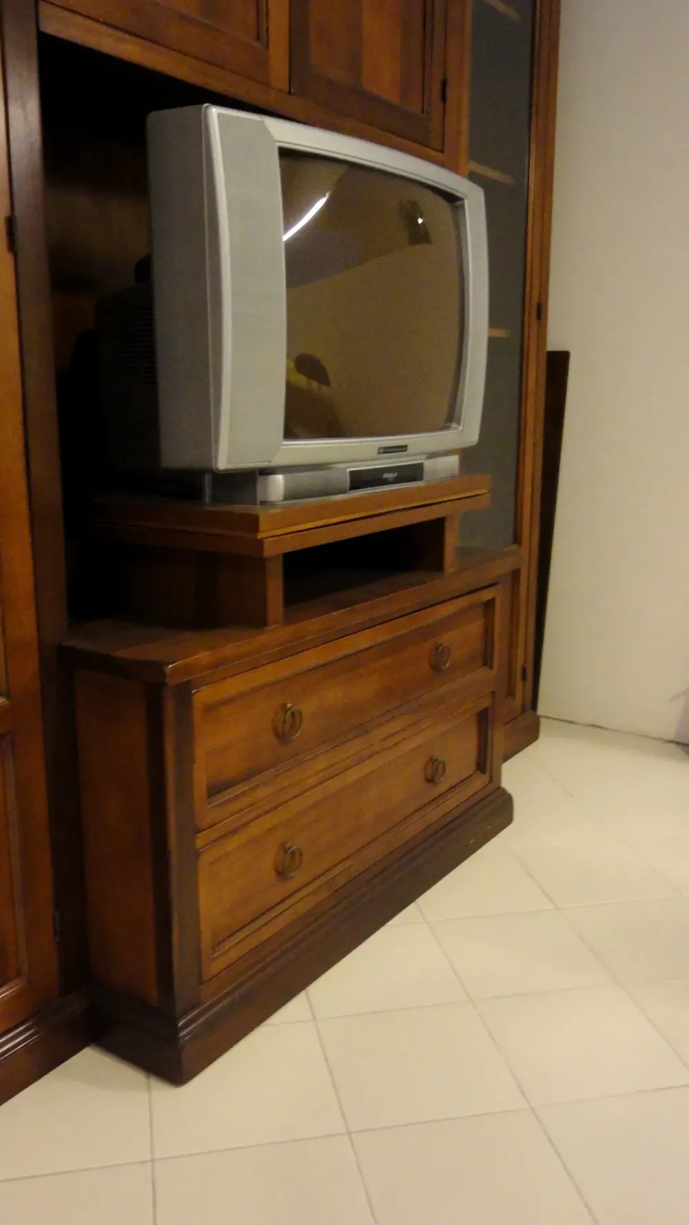 - La composizione per il living qui visibile è realizzata in materiali di qualità e resistenti negli anni: questo modello, in particolare, è in legno.