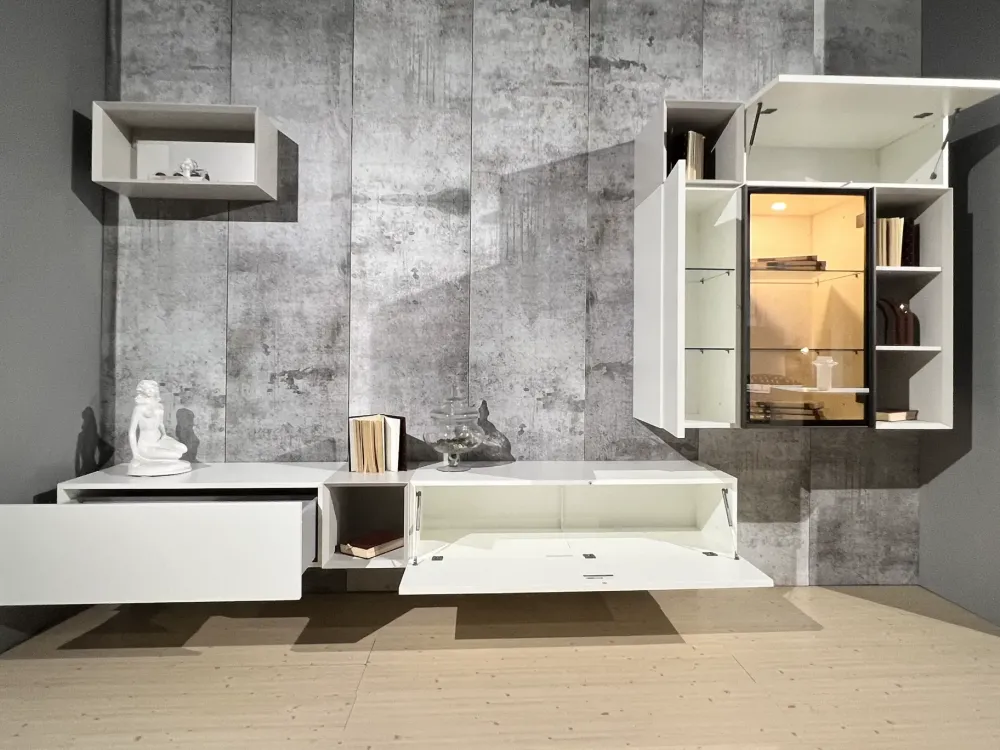 Per il tuo living abbiamo pensato ad una collezione di mobili e oggetti accessori in laccato opaco, come la parete attrezzata Spazio in offerta, ideale per abbinare doti di funzionalità e stile nel tuo living.