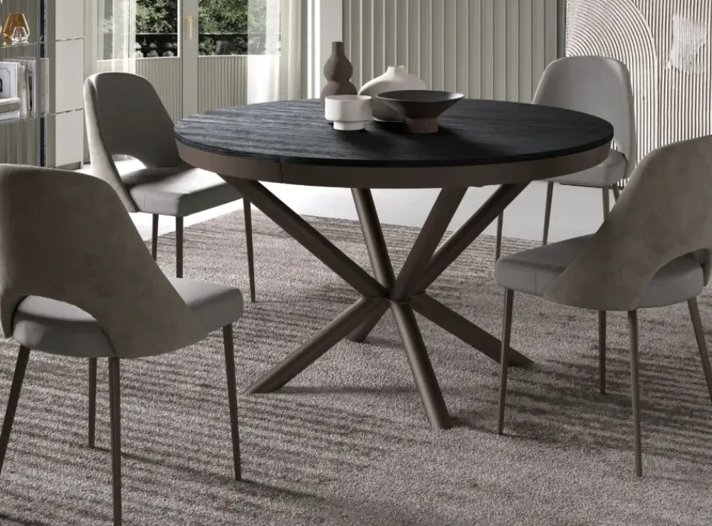 DIANA è una sedia con gambe in metallo verniciato grafite o bronzo. Seduta ergonomica rivestita in eco pelle o doppia finitura eco nabuk internamente e velvet esternamente.