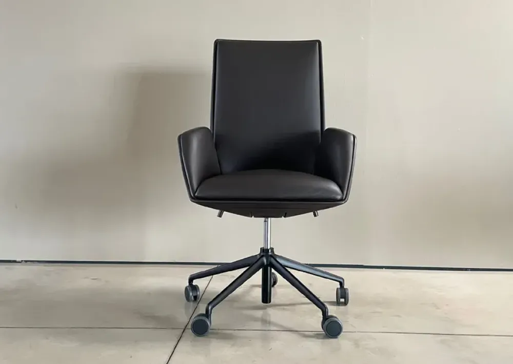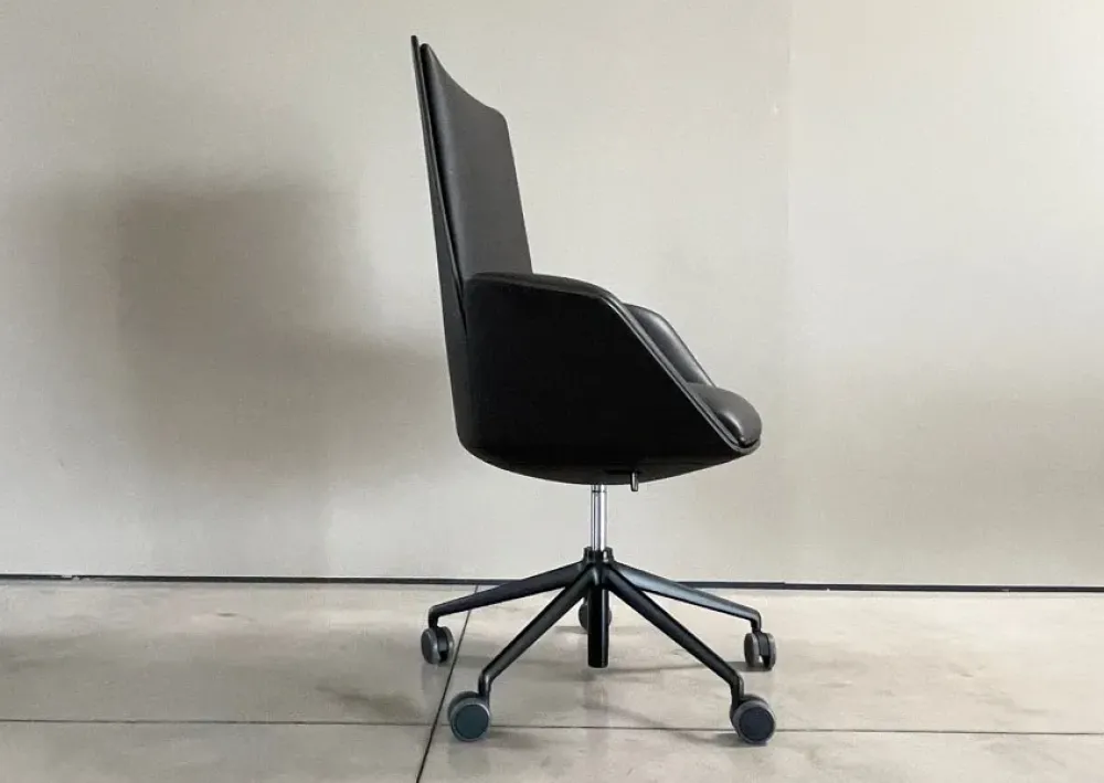 Poltrona ufficio Poltrona Frau mod. Cercle Executive rivestita in pelle SC 29 Ardesia, base in allumino nero con ruote morbide. Prodotto nuovo da esposizione.