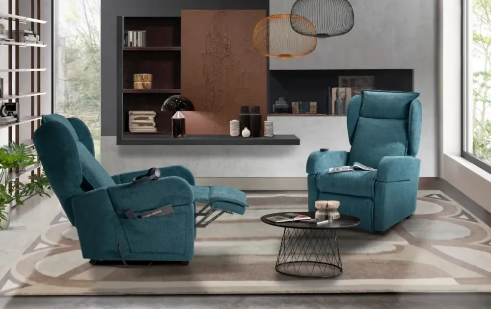 Una poltrona con movimento relax come il modello qui visibile ti permetterà di completare i tuoi spazi ottimizzando ogni angolo disponibile.