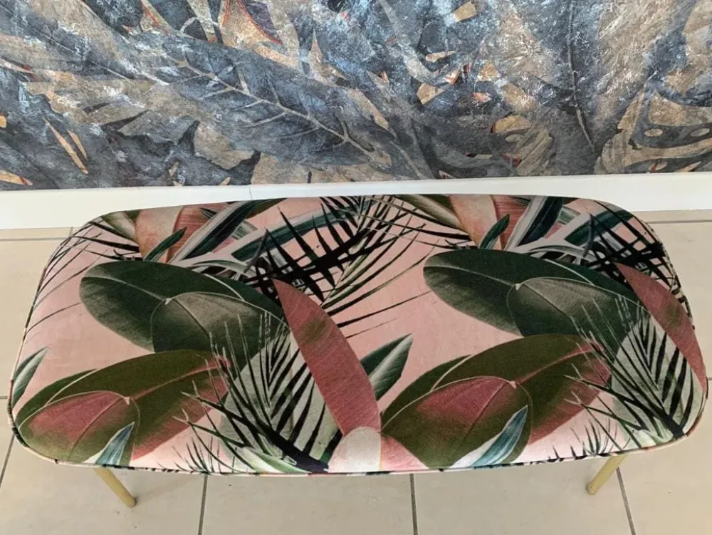Rivestimento seduta in velluto leaves colore rosa.