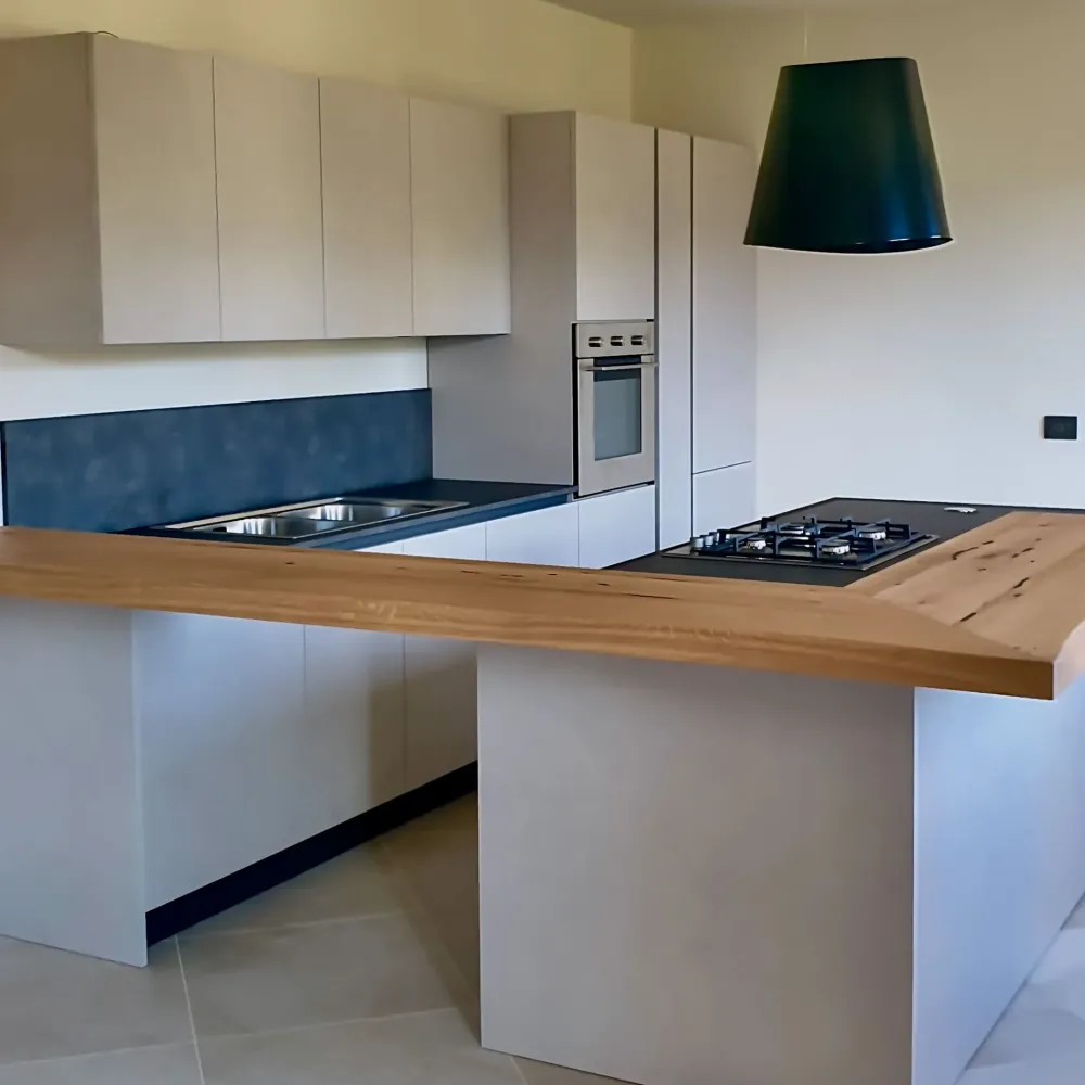 - Il top cucina afferma lo stile dell’ambiente, definendo una certa coerenza stilistica ma garantendoti anche un banco di lavoro durevole in anni di gravoso utilizzo: incluso nel costo Outlet, ne avrai uno in HPL (High-pressure decorative laminates).