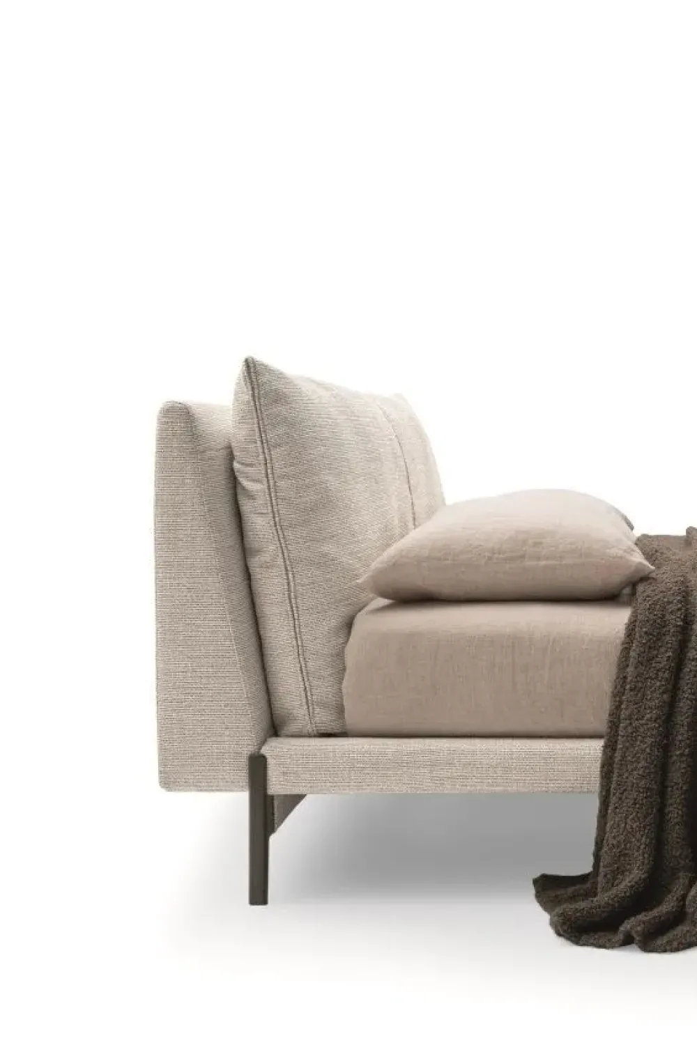 Kim letto riprende le eleganti e caratteristiche linee dell’omonimo divano, riconoscibili soprattutto nello schienale e nel giroletto. Una struttura equilibrata, con rivestimento in tessuto, pelle o mix, personalizzabile con una delle due versioni di piedino esclusivo: con o senza appoggio esterno.