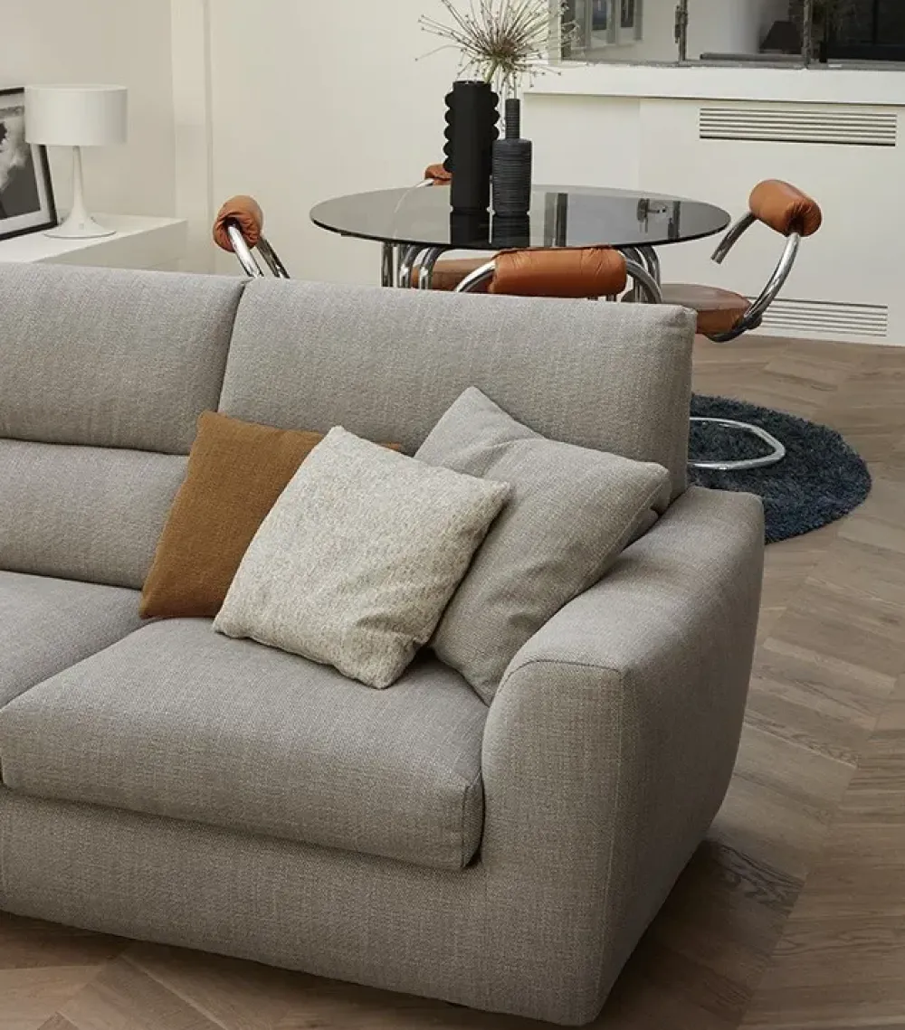 Con lo scopo di organizzare al meglio lo spazio nel soggiorno, bisogna scegliere gli arredi secondo conformazione e dimensione delle stanze, valutando perciò anche la tipologia di imbottito che fa al caso tuo tra divani, poltrone, divani letto e molto altro; il modello visibile in foto è appartenente alla serie di lineari di qualità eccellente firmati dal marchio.