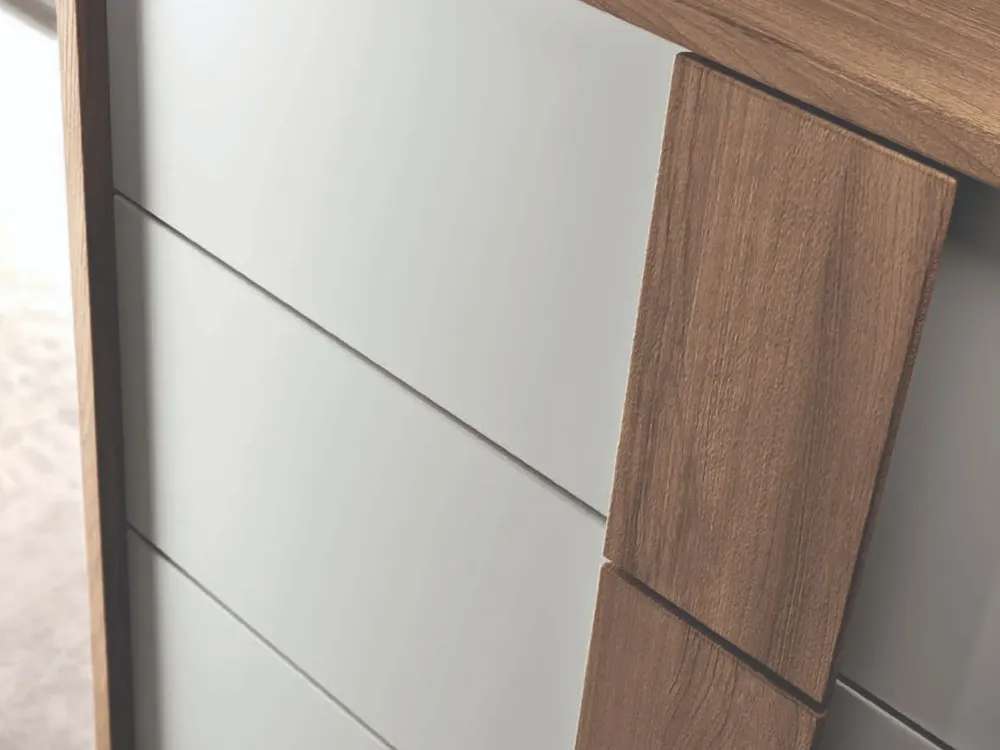 – Armadio battente FLY in finitura grigio seta e noce cognac
