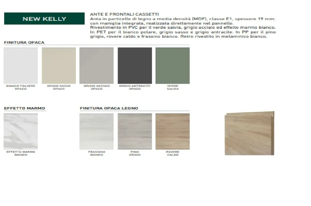 Composizione lineare mt. 3,60, altezza mt. 2,40/2,16, profondità 60/33 cm. Modello cucina Kelly, anta in MDF SPESSORE 19 mm con maniglia integrata realizzata nel pannello.