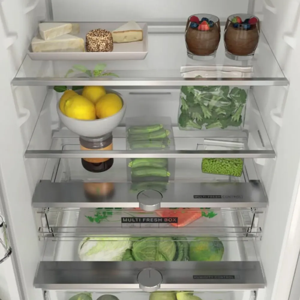 Le caratteristiche di questo frigorifero combinato da incasso Whirlpool, sono i suoi ripiani in vetro, robusti ed eleganti al tempo stesso, mentre il flusso d’aria regolare e uniforme all’interno dell’elettrodomestico garantisce una ventilazione potenziata. Dotato di sensori 6° SENSO, riescono ad abbassare automaticamente la temperatura all’interno dell’elettrodomestico quando vengono introdotti nuovi alimenti, riducendo così il consumo di energia elettrica. Inoltre ha un comodo porta-bottiglie per conservare le bottiglie con sicurezza. È attrezzato di Box appositi per posizionare i cibi più delicati. Il numero dei cassetti o cesti nel freezer sono 3, mentre il numero di ripiani nel compartimento frigorifero sono 5.