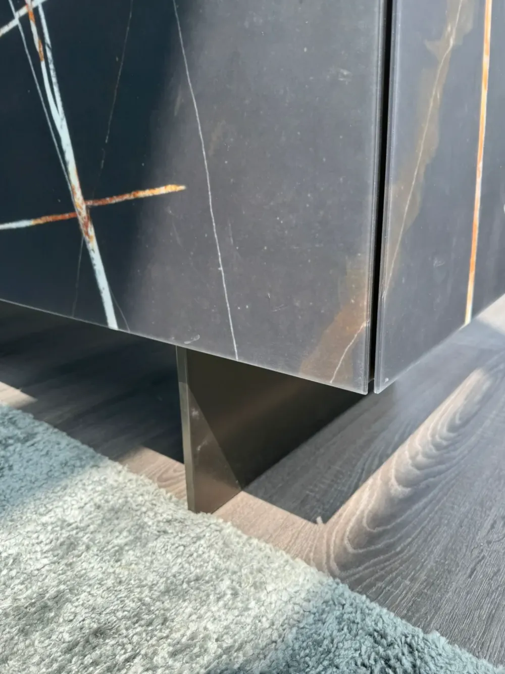 Il rivestimento in XGlass, nella raffinata finitura Sahara Noir, esalta la continuità delle venature e dei pattern, permettendo di apprezzare le proprietà dei materiali naturali con un tocco di modernità. La finitura opaca aggiunge un ulteriore livello di sofisticazione, rendendo la madia un elemento distintivo in qualsiasi spazio abitativo.
