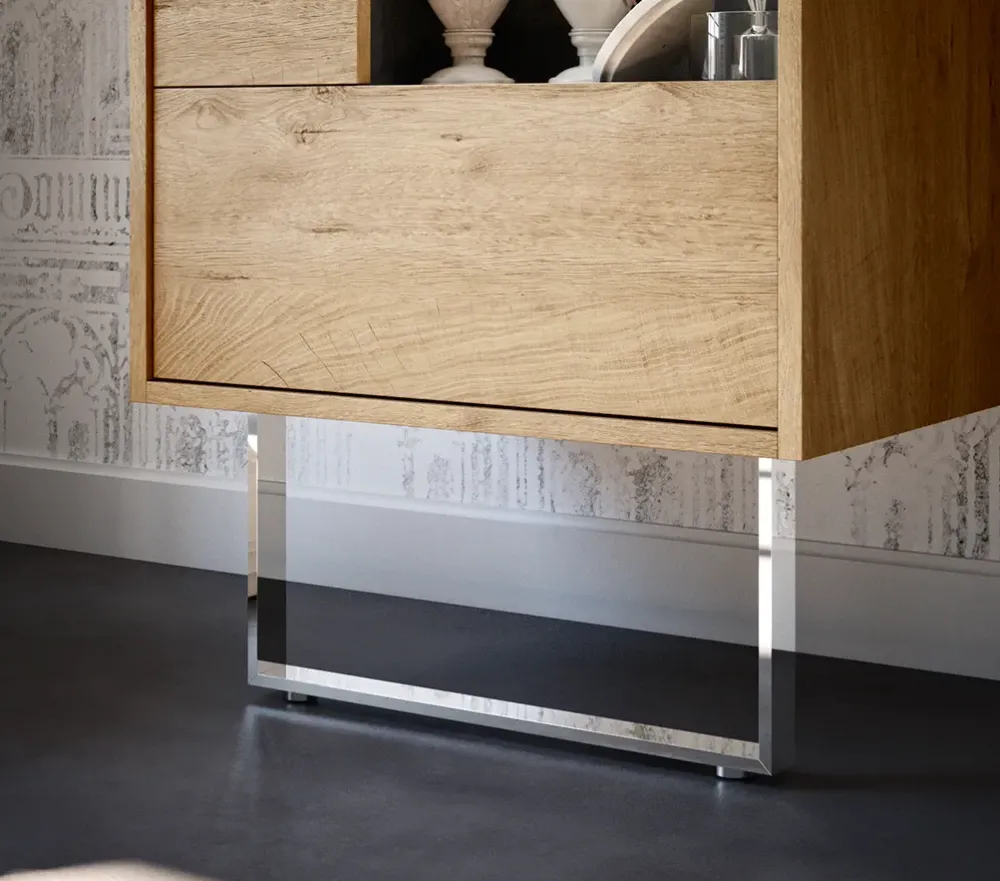 Il mobile presenta un’elegante gamba in metallo in appoggio con finitura estetica cromata.