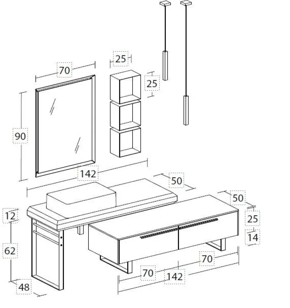 Possibilità di variare finiture e dimensioni.