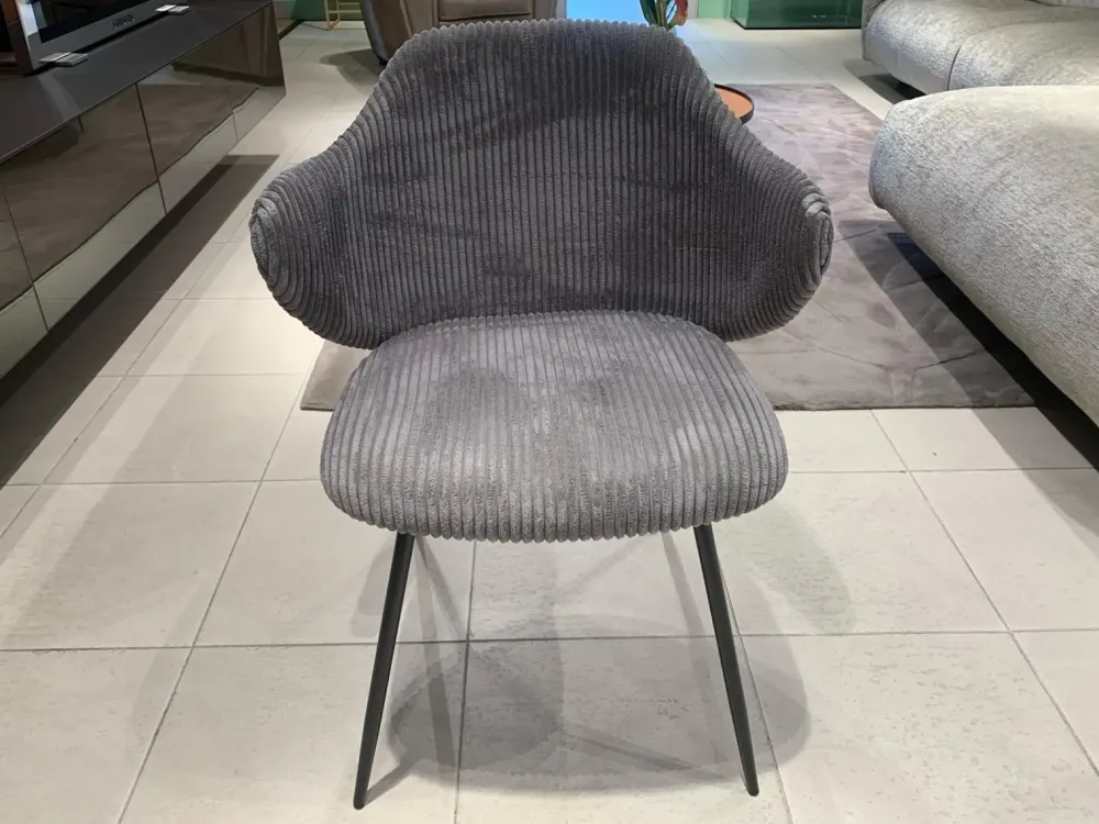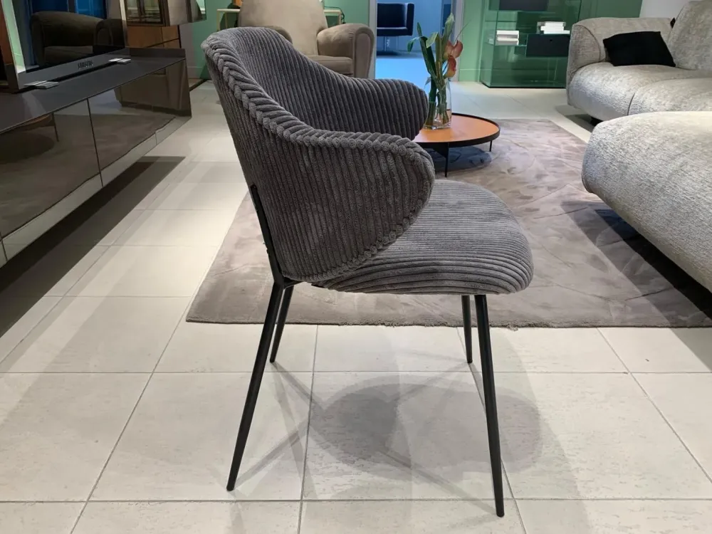 Rivestimento in velluto a coste grigio e gambe in acciaio verniciato nero