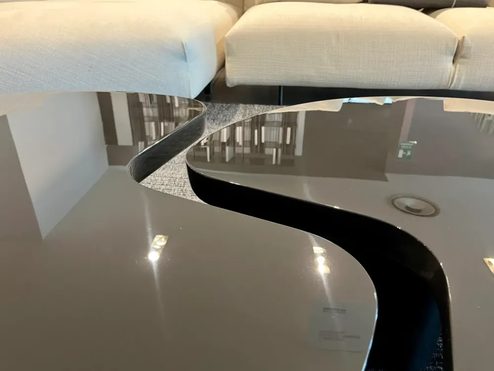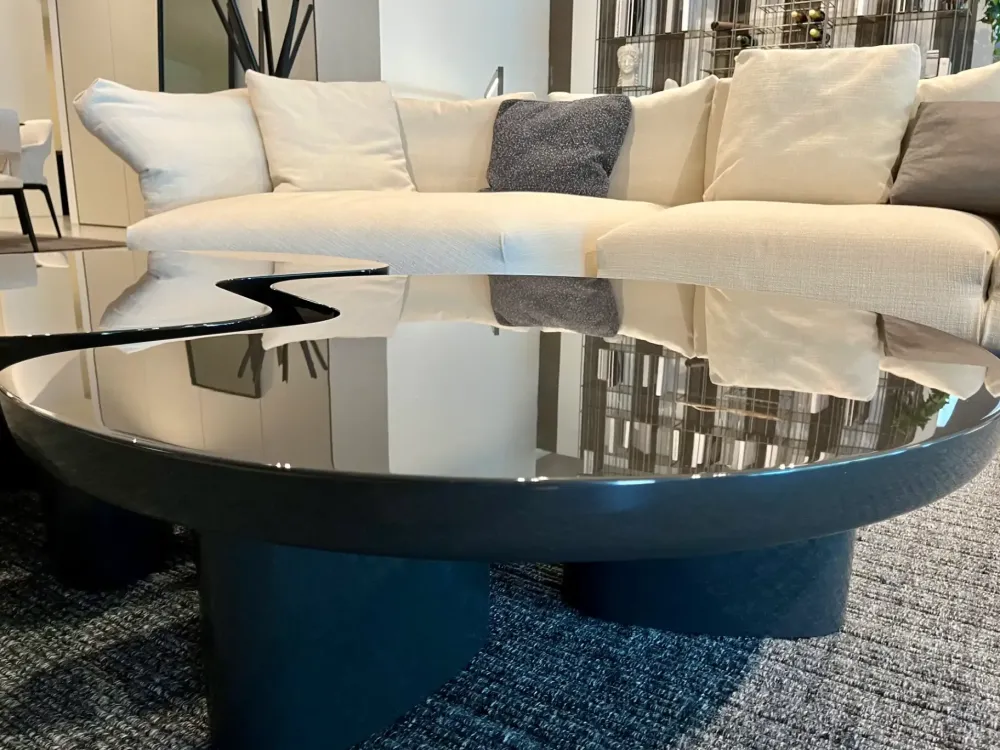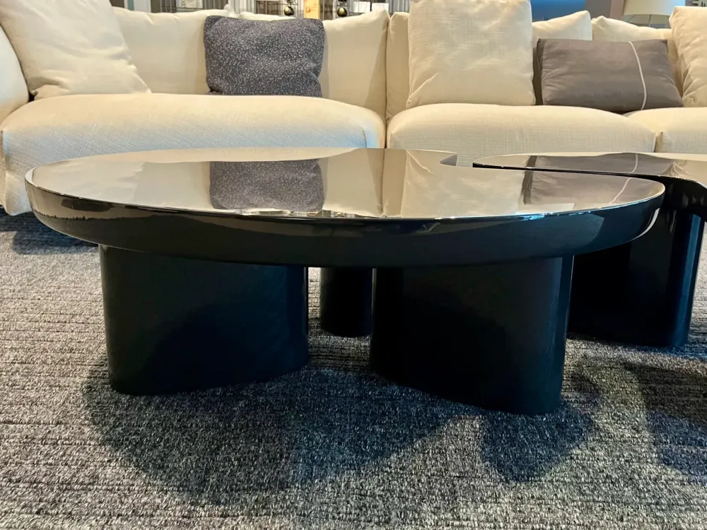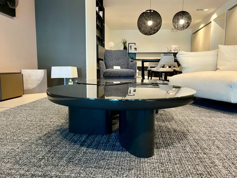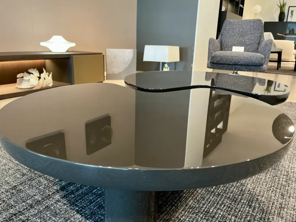 La versione disponibile nel nostro showroom presenta gambe e struttura in laccato lucido moka 49, una finitura intensa e sofisticata che esalta le forme del tavolino e lo rende estremamente versatile. Il colore moka, elegante e senza tempo, si abbina facilmente a diversi stili di arredamento, dal moderno al classico, offrendo un tocco di calore e contemporaneità.