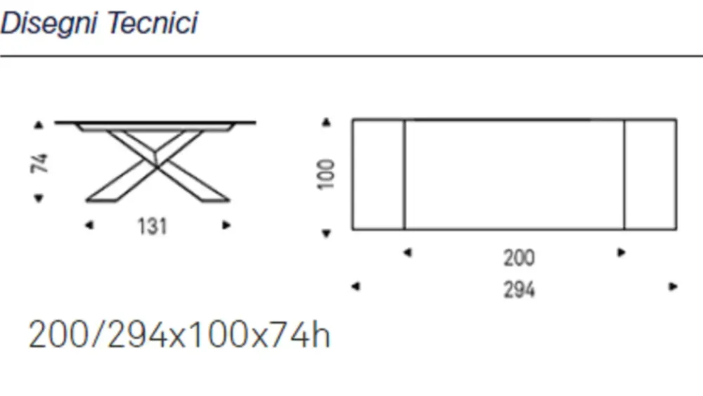 CHIUSO 200 cm / APERTO 294 cm x100 cm x74 h cm altezza