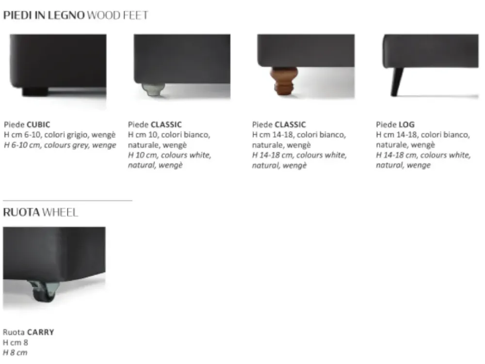 - Per configurazione di misure, piedi o rivestimenti di categoria differente quotazione a richiesta.