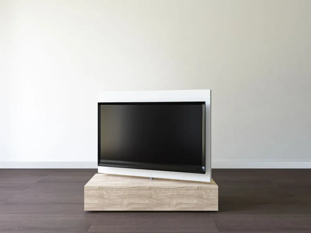 1 Pannello porta TV bifacciale con sistema di rotazione in finitura laccato opaco color bianco