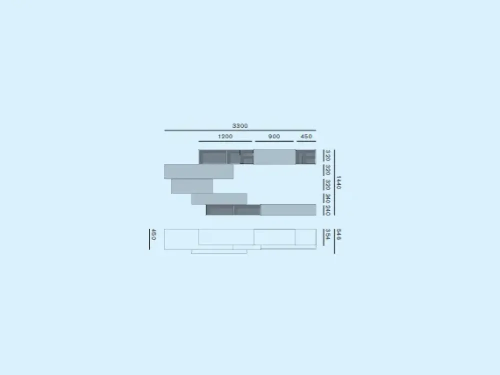 Dinamismo, variazioni, libertà progettuale: i pensili con top integrato nel coperchio, proposti in diverse altezze (160, 240, 320, 400 mm), producono composizioni dalla forte