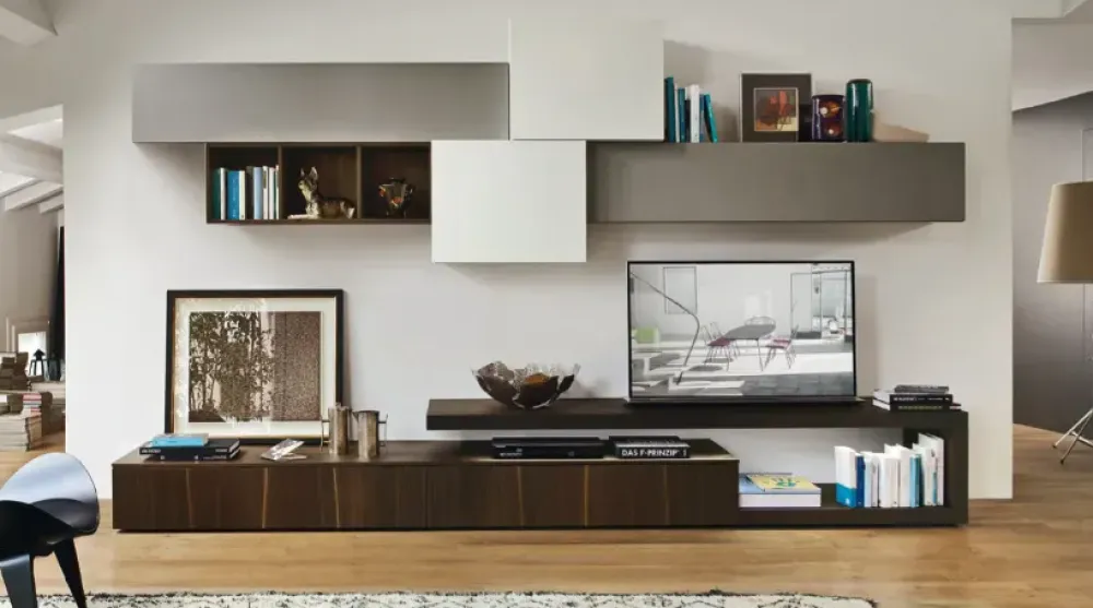 Per impreziosire un living moderne prediligi una parete attrezzata che mantenga una certa idea di stile, come questo modello L6c20 a prezzo scontato.