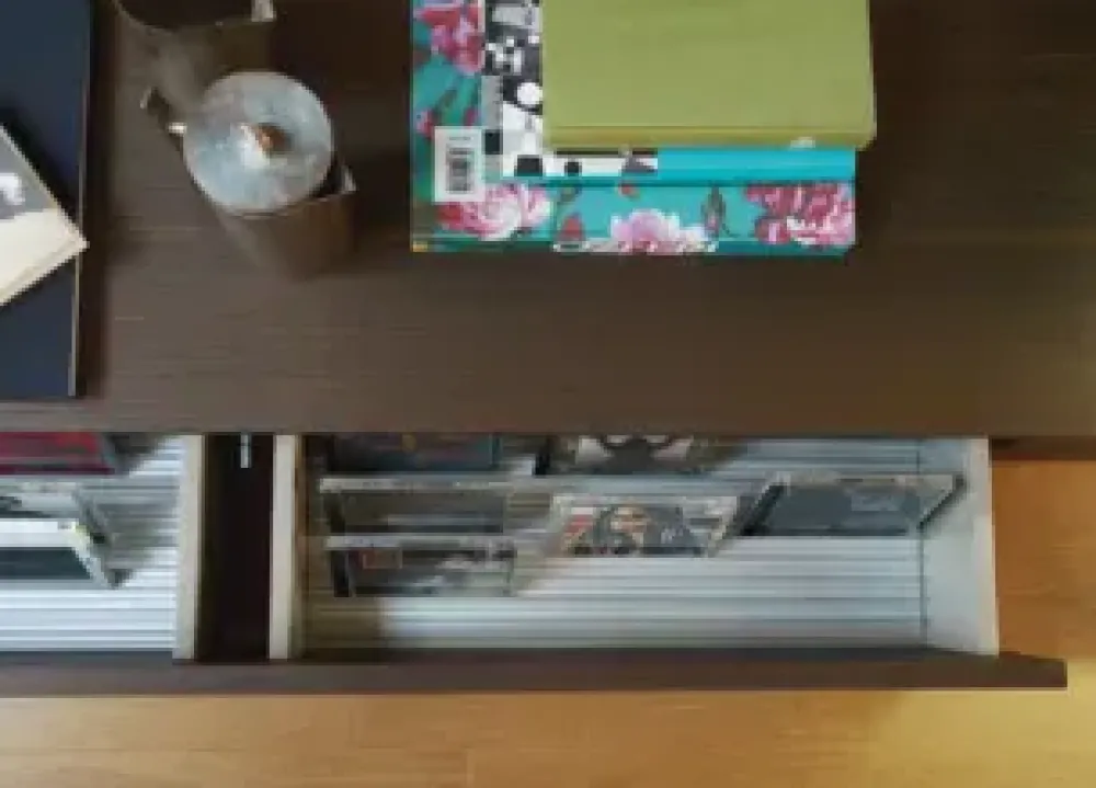 Per risolvere diverse problematiche abitative, Sangiacomo ha messo a punto una linea di mobili e complementi di diverse tipologie: il modello visibile in foto, ad esempio, è a terra.