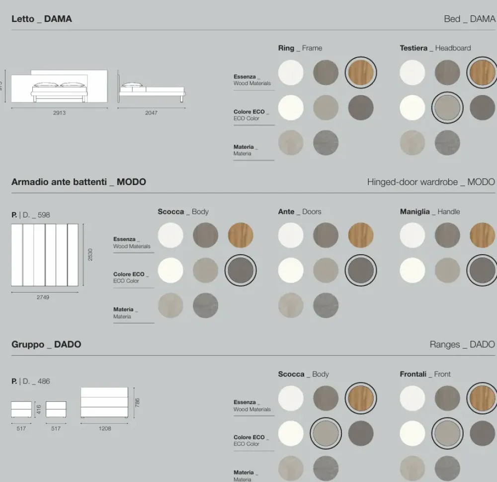 Per ricreare peculiari atmosfere moderne nella tua camera, opta per mobili dalle tonalità neutre e dalle forme semplici, mentre per quelle più classiche, opta per prodotti nelle gradazioni di colore più calde e dalle forme morbide; il brand ha optato per un materiale tanto pregiato quanto durevole per questo modello Composizione dama 318, vale a dire il legno, tale da renderlo ideale per completare la resa estetica della zona notte definendone anche le doti di funzionalità.