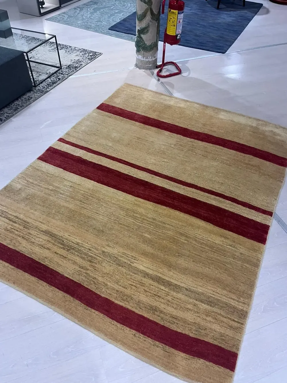 Tappeto in lana filata a mano e tinta con colori vegetali. Dimensioni 233cm x 180cm