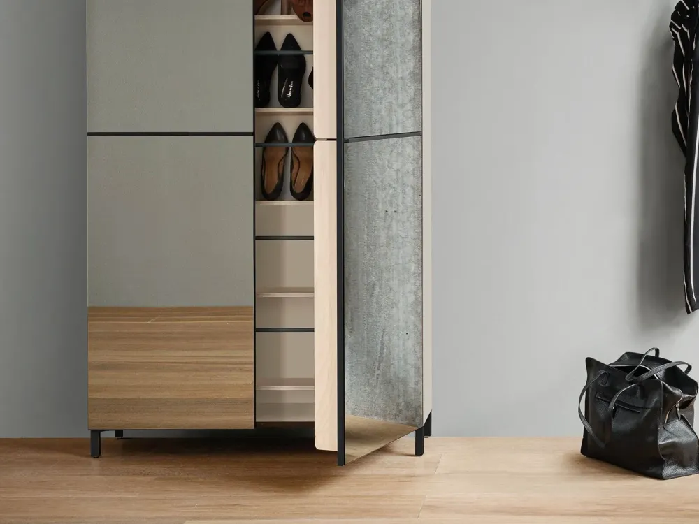 Scarpiera Linear con specchio disponibile in diverse finiture.