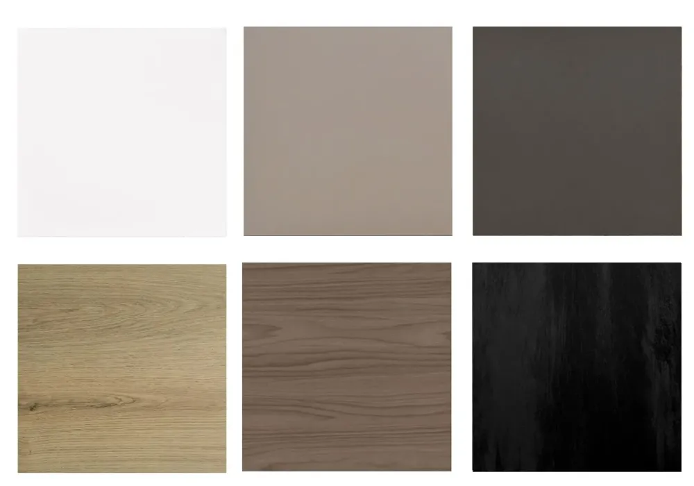 bianco opaco, bianco matrix, grigio tortora, grigio ardesia,