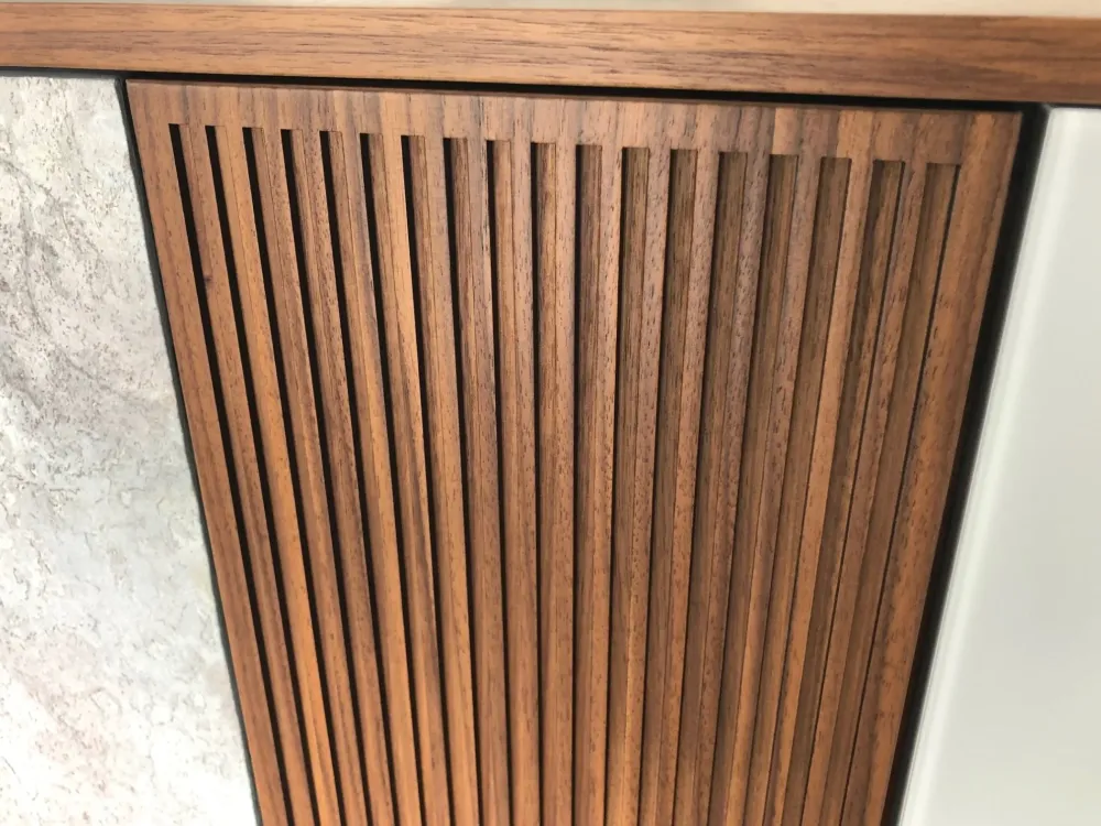 - La Madia Horizon di Mobilgam è dotata di una maniglia push–pull che permette di aprirla e chiuderla facilmente.