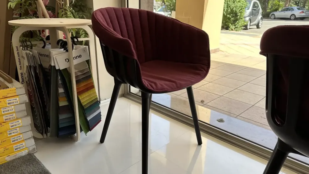 Sedia Gaber modello Basket con gambe e seduta nere, disponibile con cover tappezzata rimovibile drappeggiata come da foto +